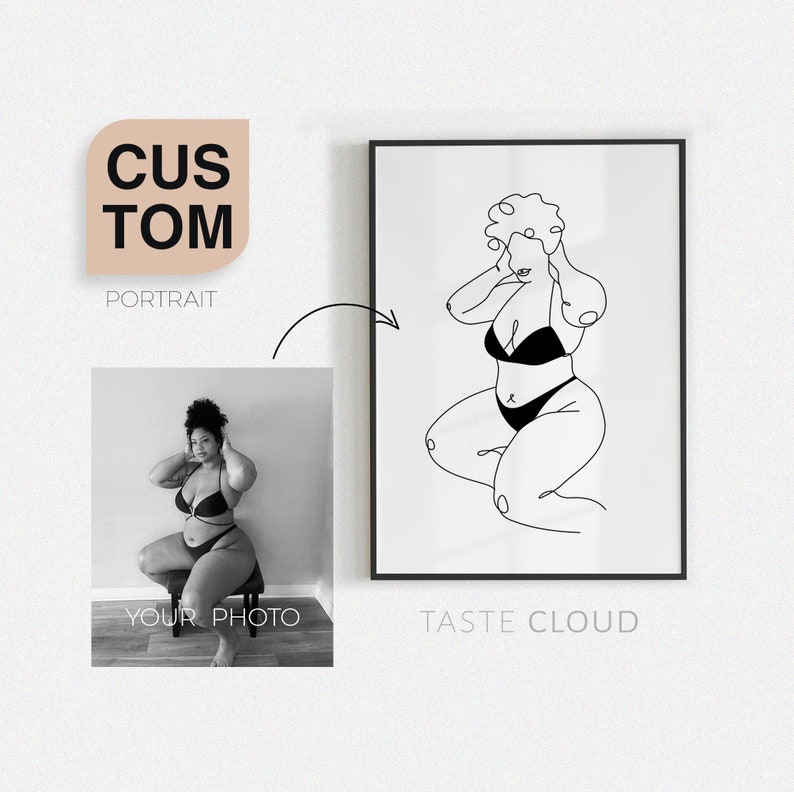 You can make your own art wall with printed photos or commission it. Here are some links to custom body positivity art creators on Etsy: