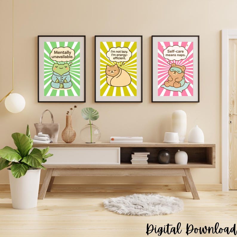Made for anyone who’s living their soft spiral era, these digital prints are the perfect blend of humor, comfort, and pastel vibes.